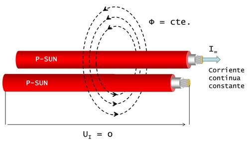 Como sabemos los paneles fotovoltaicos captan la radiación solar y la transforman en energía eléctrica generando corriente continua. La corriente continua lleva aparejada un campo magnético también continuo, al no variar prácticamente en el tiempo o variar muy lentamente no produce inducciones por lo que no es inconveniente agrupar conductores de la misma polaridad ya que a diferencia de los sistemas eléctricos de corriente alterna no es necesario compensar los campos electromagnéticos para eliminar, en gran medida, los efectos inductivos.