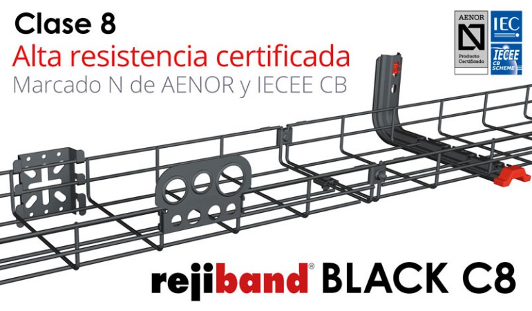 Rejiband® BLACK C8® ha obtenido el Marcado N de AENOR (Asociación Española de Normalización y Certificación) y la certificación IECEE CB Scheme de IEC (International Electrotechnical Commission), garantizando la Clase C8 de resistencia a la Corrosión, con más de 1000 horas en cámara de niebla salina.
