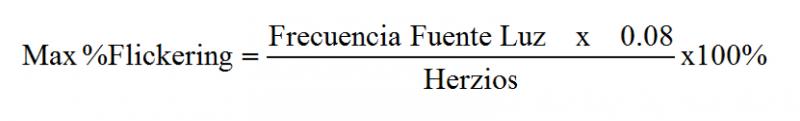 De acuerdo con la fórmula anterior, el porcentaje máximo de parpadeo a 100 Hz (red de 50 Hz) y de 120 Hz (red 60Hz) calcula a 8% y 10%, respectivamente.