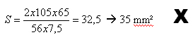 En este caso vemos que la sección es inferior pero al partir de una hipótesis errónea (20 ºC en el conductor) tendremos, por ello, una caída de tensión superior al 1%. Pudiendo llegar a un error del 28 %.