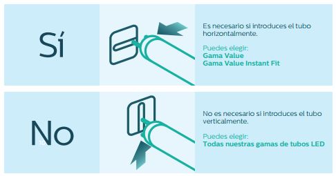 Hay que comprobar la compatibilidad del tubo con la luminaria instalada previamente. Así, podremos ver entre qué gama elegir.