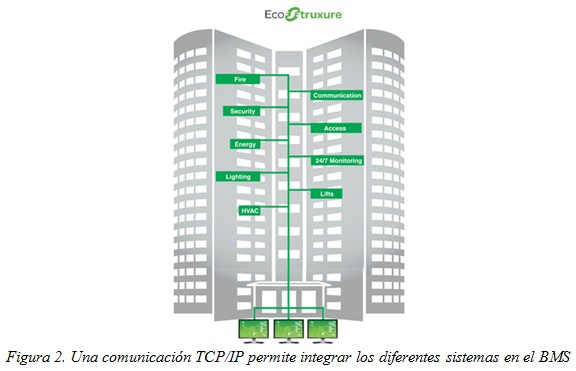 El BMS permite configurar y automatizar un edificio de manera que los administradores de instalaciones hagan un trabajo más eficiente y los ocupantes ganen en eficacia, confort y seguridad. Así, un BMS simplifica la automatización de los controles de temperatura, de iluminación, de accesos, o de los circuitos de video vigilancia de un edificio según las directrices y estrategias de Eficiencia Energética, confort y/o seguridad establecidas. Es el caso de EcoStruxure for Buildings, la solución de Schneider Electric para la gestión inteligente e integral de la energía, confort y seguridad en edificios.