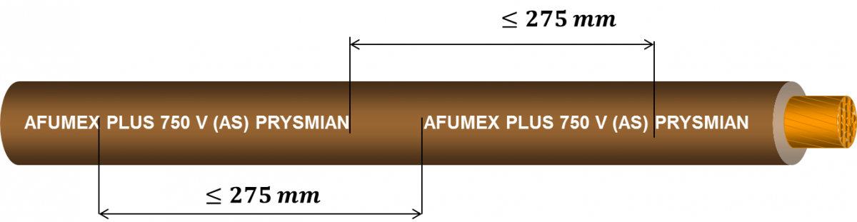 Las normas de diseño de los conductores eléctricos aislados hasta 450/750 V indican que la distancia entre marcas debe ser igual o inferior a 27,5 cm. Medidos según se ve en la figura.