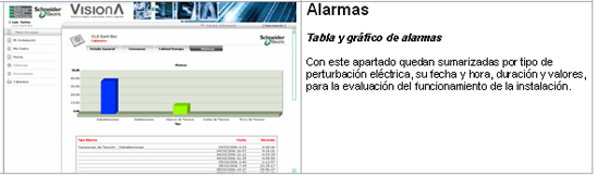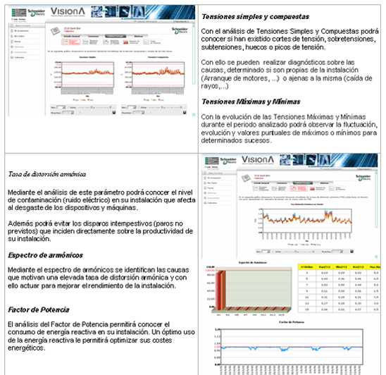 Análisis Externo o VISION^:En podrá seleccionar la información más interesante para su gestión entre múltiples opciones relacionadas con el consumo energético, la calidad de la energía y los indicadores o alarmas de su instalación. Además, puede solicitar la personalización de cualquier apartado según sus necesidades.