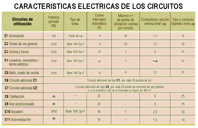 En cuanto a instalaciones en las viviendas, la electrificación básica está orientada a cubrir las necesidades sin obras posteriores, instalando 5.750 W (25 A). Se instalará una electrificación elevada cuando se prevea un consumo superior al básico con previsión de calefacción eléctrica o aire acondicionado siendo la superficie útil superior a 160 m2, entonces se instalarán 9200 W (40 A), siendo el Interruptor Automático general, en ambos casos, el que corresponda a la potencia instalada.