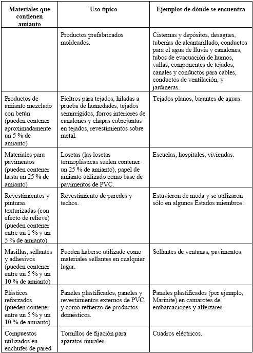 - 15 de junio de 2002 - Entrada en vigor de la prohibición de fabricar productos que contengan amianto. Hasta el 15 de diciembre de 2002 se podían comercializar e instalar productos con amianto fabricados antes del 15 de junio de 2002.