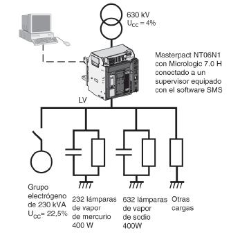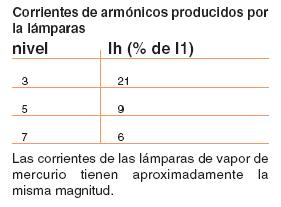 - la circulación de importantes corrientes de armónicos, en concreto de nivel 3. Estos armónicos proceden de las lámparas de vapor de sodio y mercurio