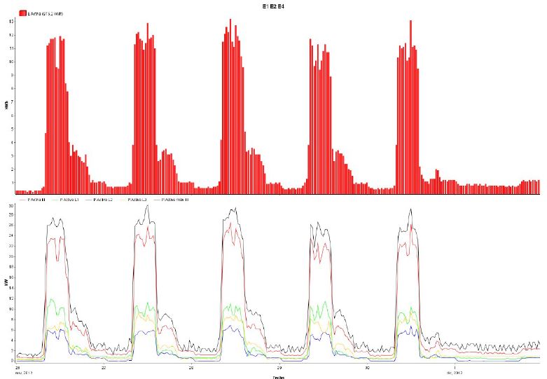 ( 24 kW) en la semana del 23 al 29 de noviembre de 2015 para los edificios 1,2 y 4 .