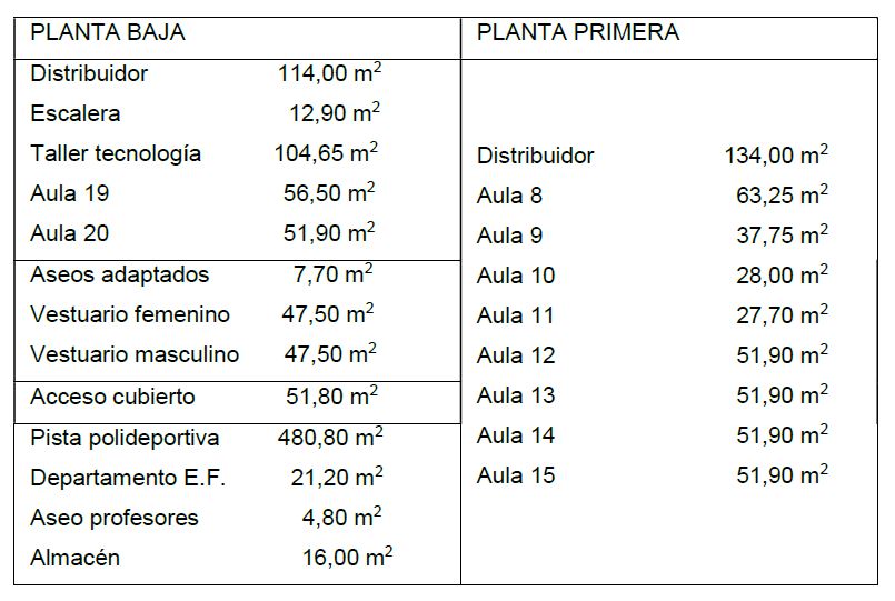 El reparto de superficies es el siguiente: