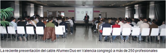 El interés que está despertando en el sector el nuevo cable Afumex Duo, único conductor eléctrico que incorpora fibra óptica, se ve reflejado en una asistencia masiva a las jornadas organizadas en Sevilla, Bilbao, Valencia y Madrid. Barcelona será en breve lugar de encuentro para ingenieros e instaladores interesados en conocer al detalle las ventajas de este nuevo hito tecnológico de Prysmian.