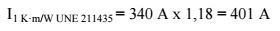 Este nuevo valor es algo más comparable a los 430 A de la UNE 20435.