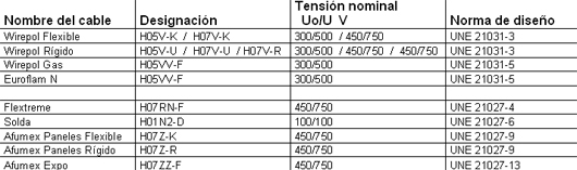 Uo/U = 450/750 V Máximo 495/825 V en alterna y máximo 675/1125 V en continua