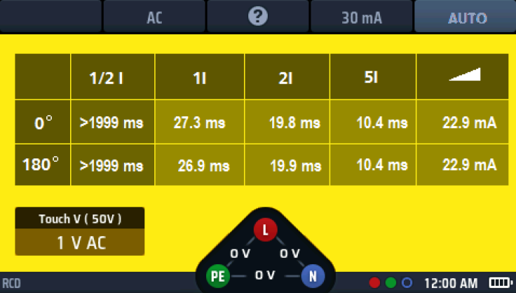 Sin embargo, durante una prueba de bucle sin disparo, el instrumento introduce una corriente de prueba de bajo nivel destinada a evitar la activación del RCD.