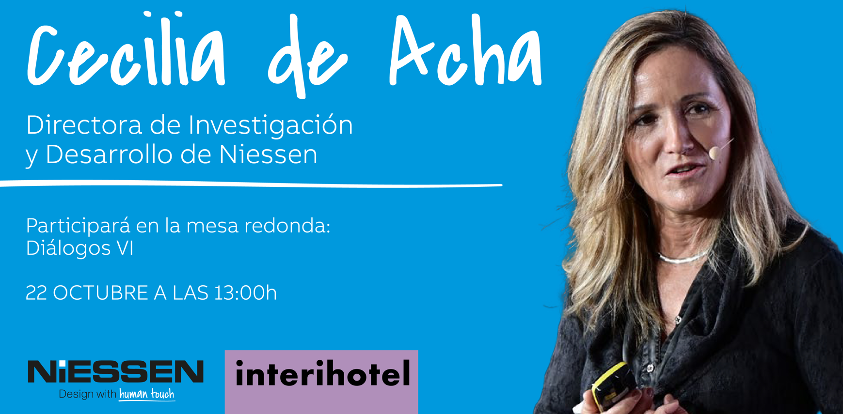 Cecilia de Acha, Directora de Investigación y Desarrollo de Niessen, participará en la mesa redonda “Diálogos VI” para debatir sobre las nuevas tendencias en diseño hotelero, producto y tecnología junto a destacados profesionales internacionales.